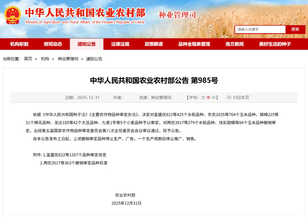 近日,農業農村部發布公告,共審定通過水稻品種425個、玉米品種764個、棉花品種31個、大豆品種42個、小麥品種5個。東亞種業3個玉米品種通過國家審定。